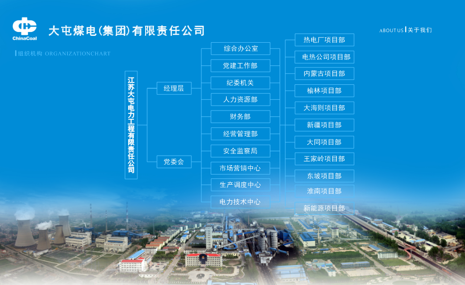 江蘇大屯電力工程有限責任公司始建于1993年,前身是大屯煤電(集團)有限責任公司(以下簡稱“大屯煤電公司”)發電廠火電設備維修公司,2013年更名為江蘇德信中大火電設備維修公司,2016年更名為江蘇大屯電力工程有限責任公司,2018年根據中國中煤發展戰略,正式組建“江蘇大屯電力工程有限責任公司”,成為大屯煤電公司的全資子公司(以下簡稱“電力工程公司或公司”),是集火力發電、輸變電、能源綜合利用、環保、建筑、電解鋁、工廠建設及新能源等各類工程的總承包、項目管理、安裝調試和技術服務、電站運營、太陽能發電技術服務、新興能源技術研發、培訓及維護為一體的專業化工程公司。